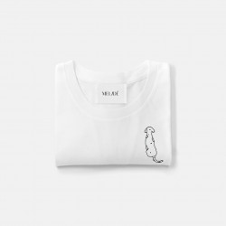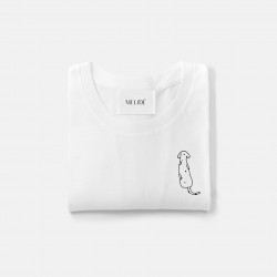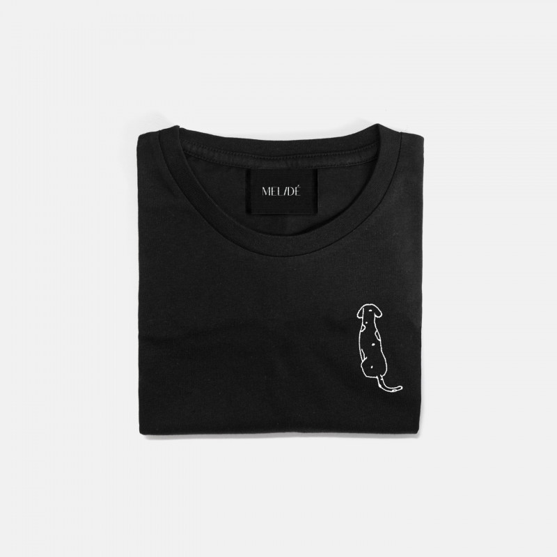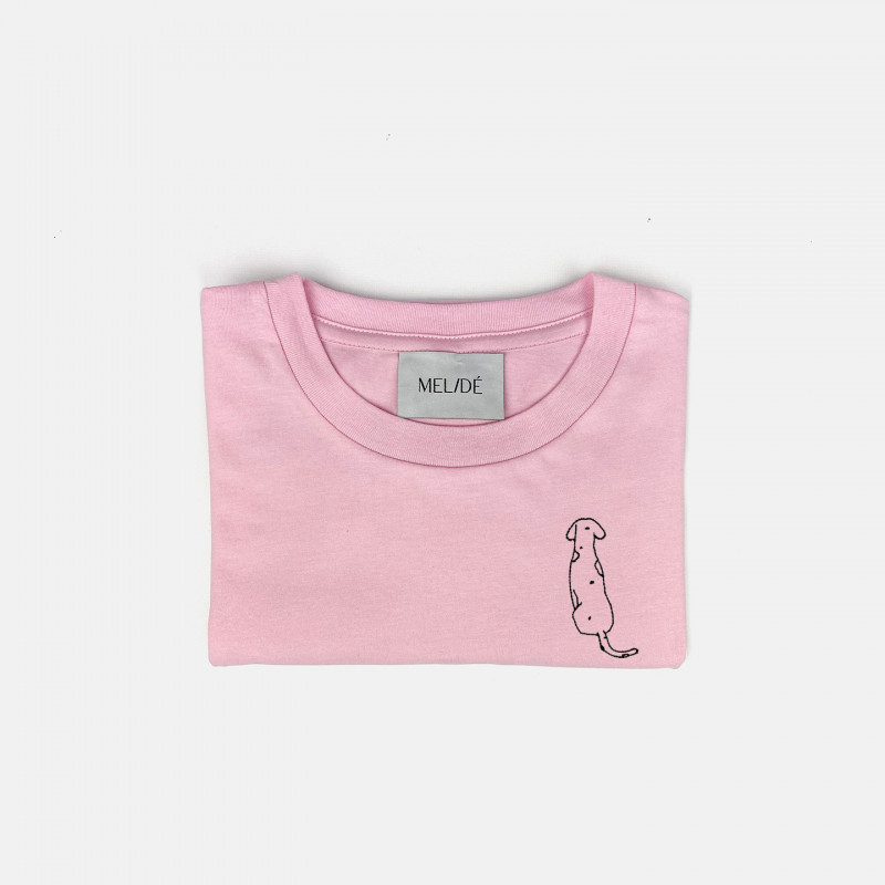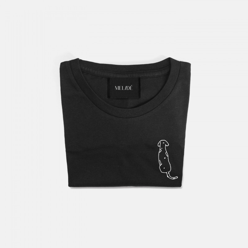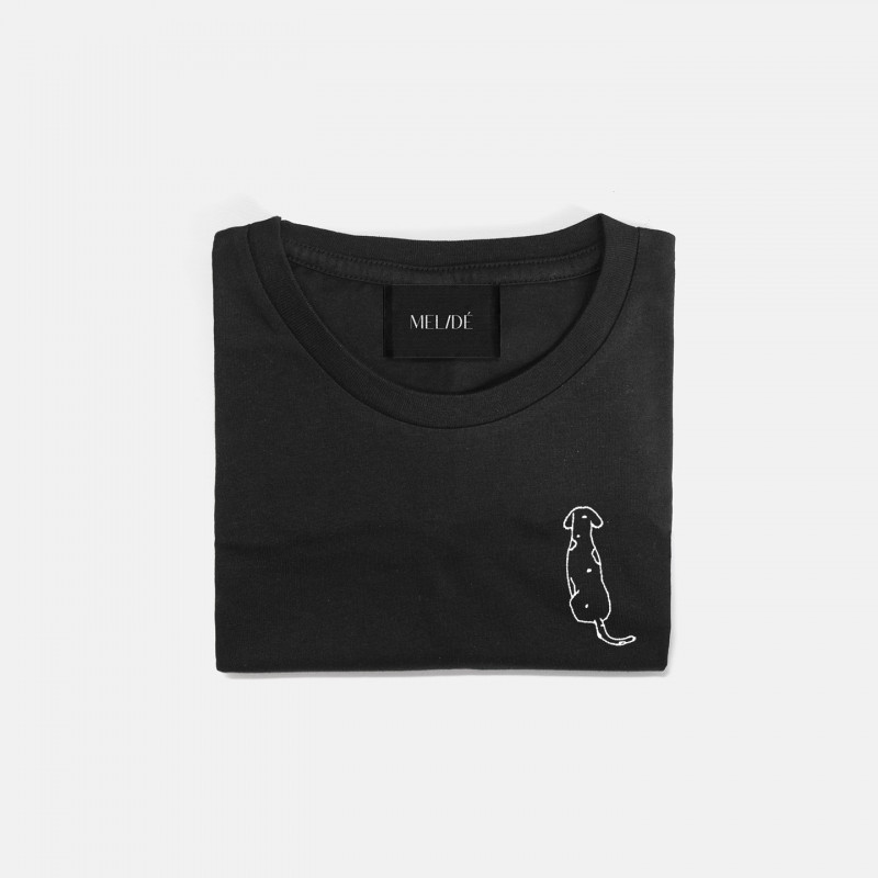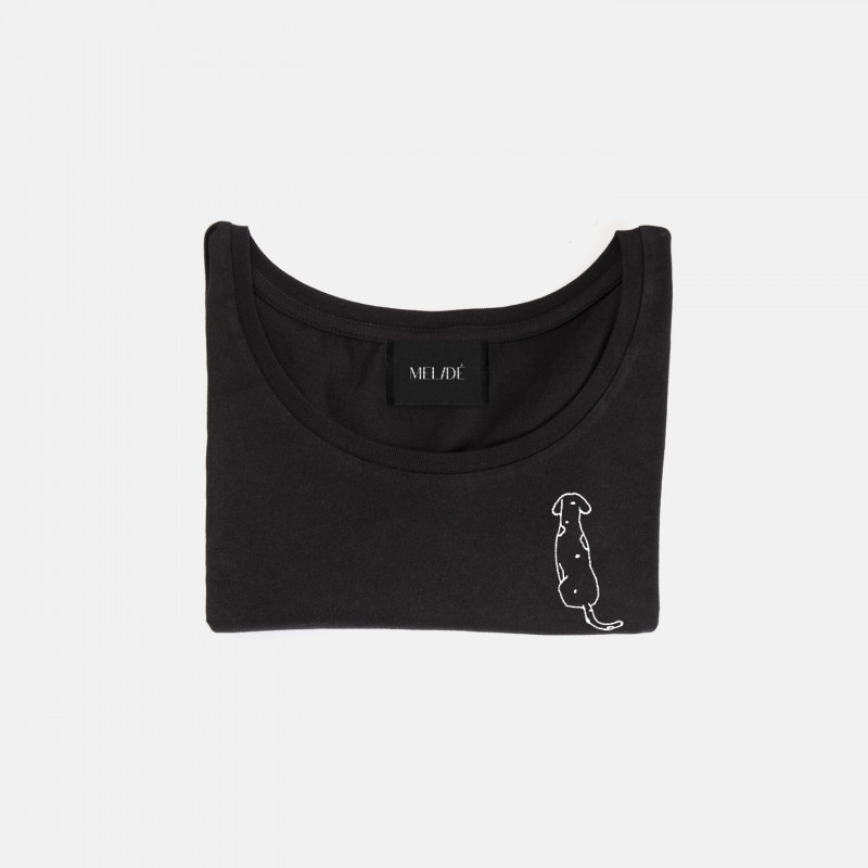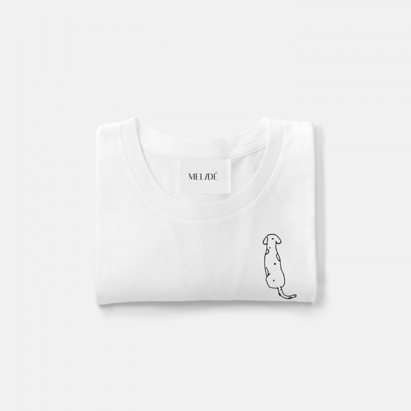 T-shirt in cotone biologico certificato modello Carlotta the Dog, ricamata a mano nella nostra factory. Il ricamo, a differenza delle comuni stampe che si trovano sulle t-shirt in commercio, non perde la qualità con il passare del tempo.