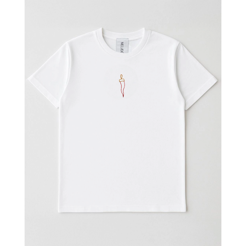 T-shirt ricamata a mano con cornetto portafortuna in cotone biologico