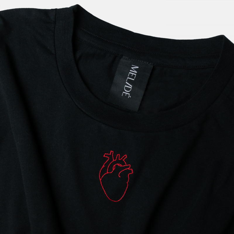 Il lineheart, da noi chiamato cuore anatomico, fa parte delle storia di melidé. È uno dei nostri ricami iconici e dal 2016 è anche uno dei più venduti. Non ci stancheremo mai di lui.