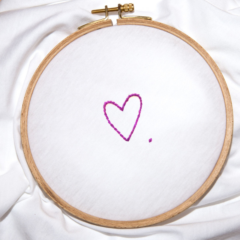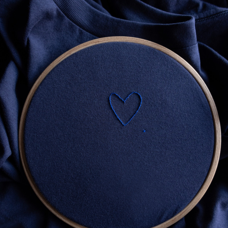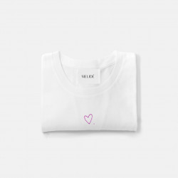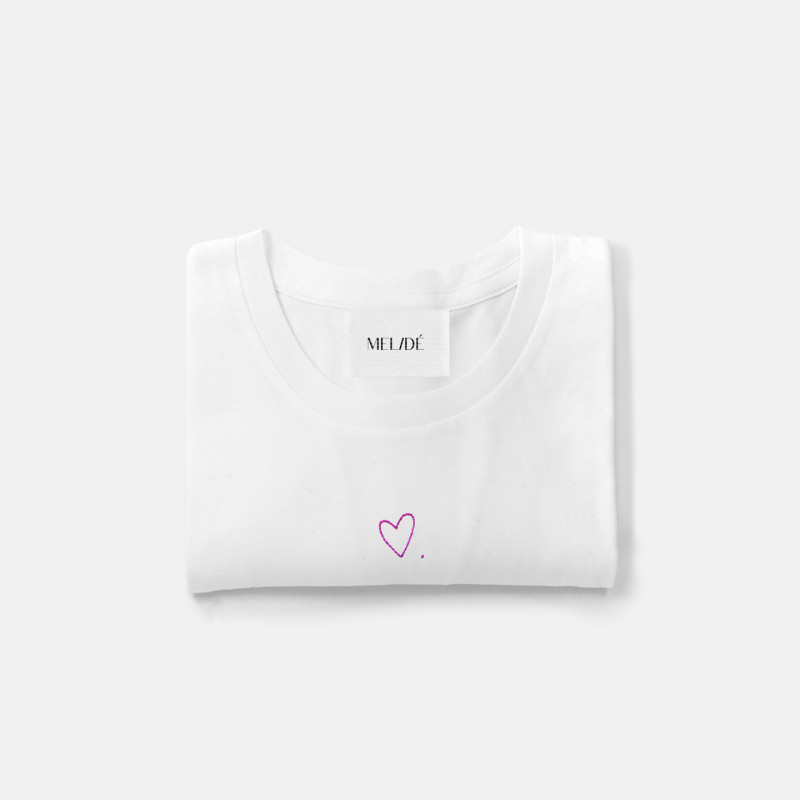 T-shirt in cotone biologico modello Dot Heart, ricamata a mano su cotone sostenibile di alta qualità.