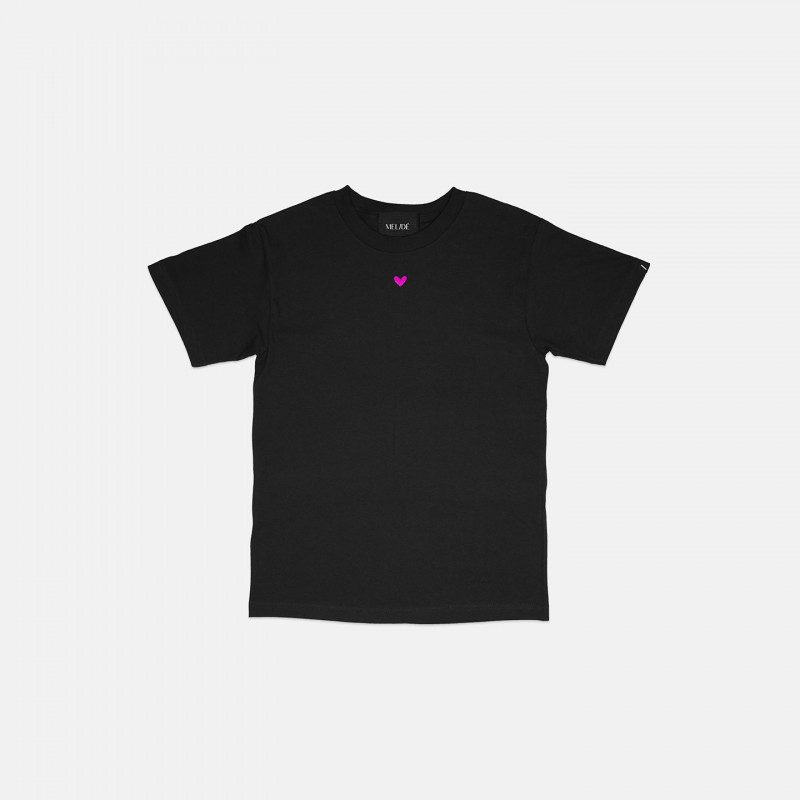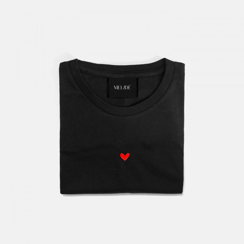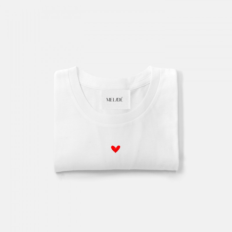 T-shirt in cotone biologico modello cuoricino, con ricamo realizzato a mano su cotone sostenibile di alta qualità. Il ricamo mantiene forma, colore e qualità nel tempo.