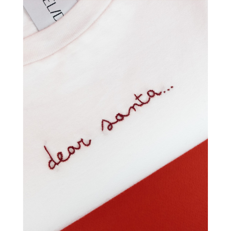 "Dear Santa": una t-shirt che racchiude tutto il fascino di una lettera mai spedita. Perfetta per chi vuole dichiarare i propri desideri natalizi con ironia e un sorriso tra le righe. Indossala e lascia che il mondo legga il tuo messaggio, con la speranza che il caro vecchio Santa abbia il Wi-Fi acceso.