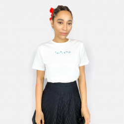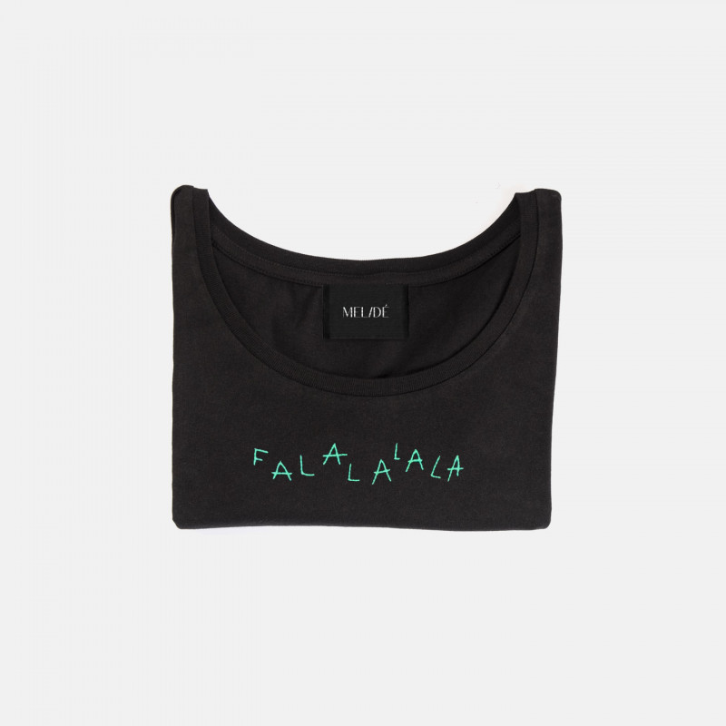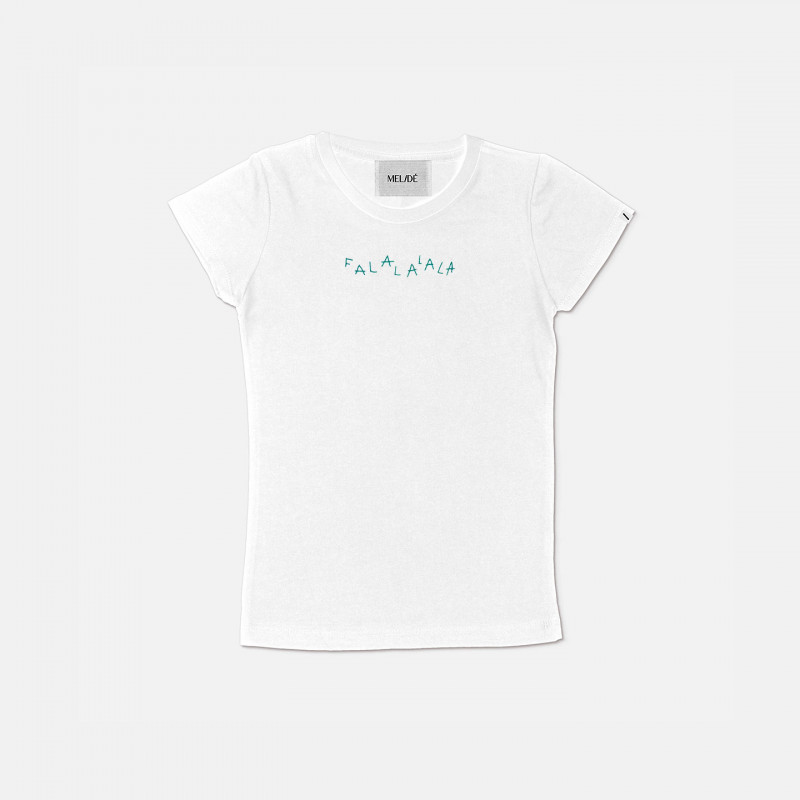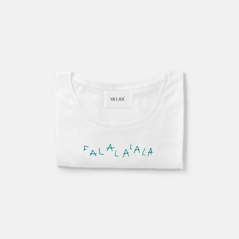 T-shirt ricamata a mano nella factory melidé in cotone GOTS.