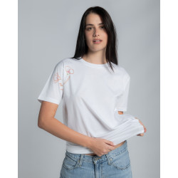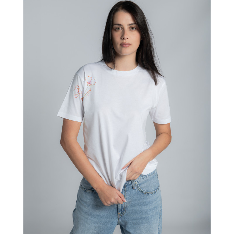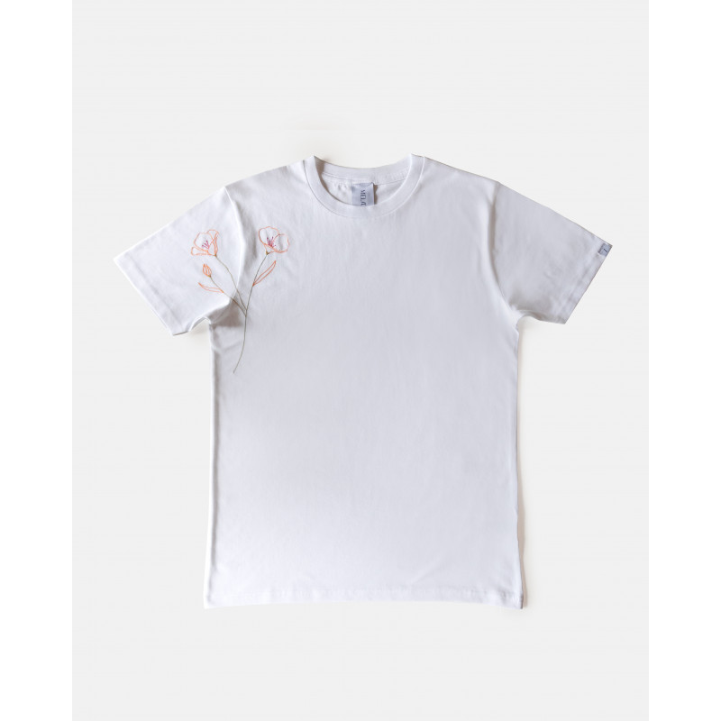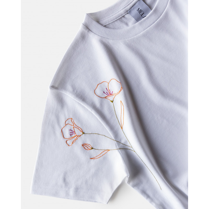 T-shirt in cotone ecosostenibile ricamata a mano.
