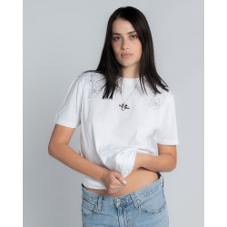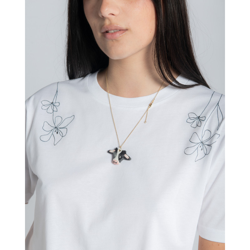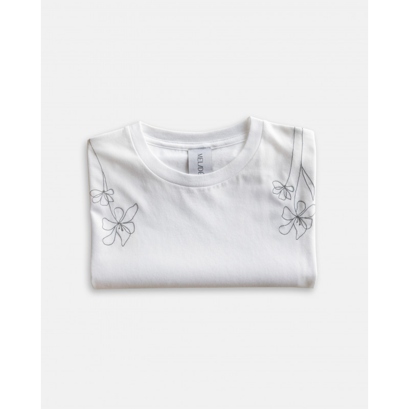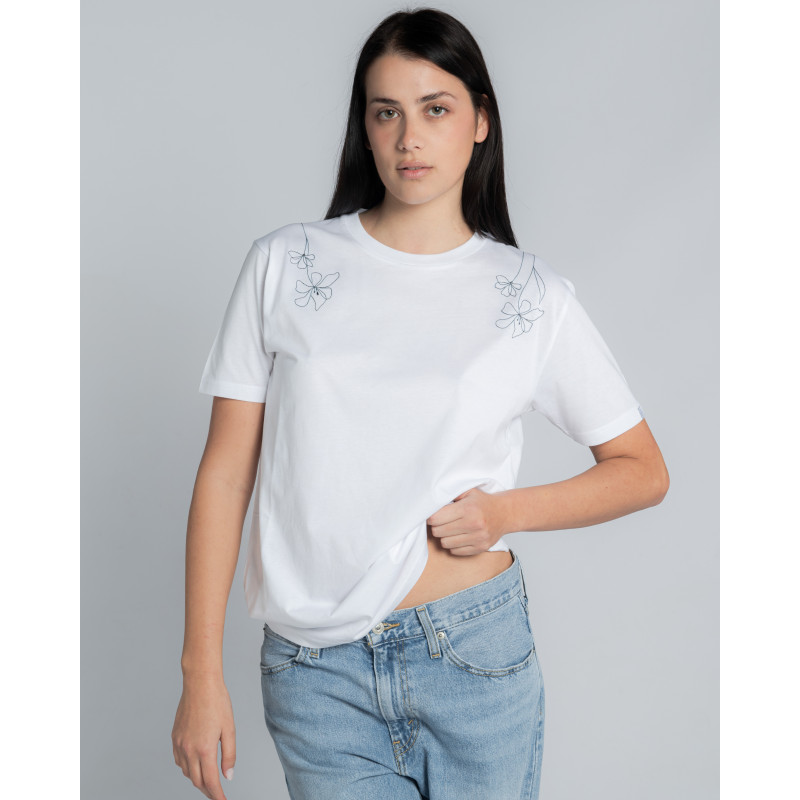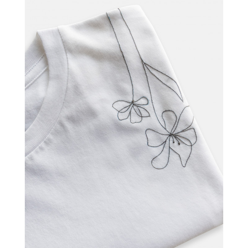 T-shirt in cotone ecosostenibile ricamata a mano.