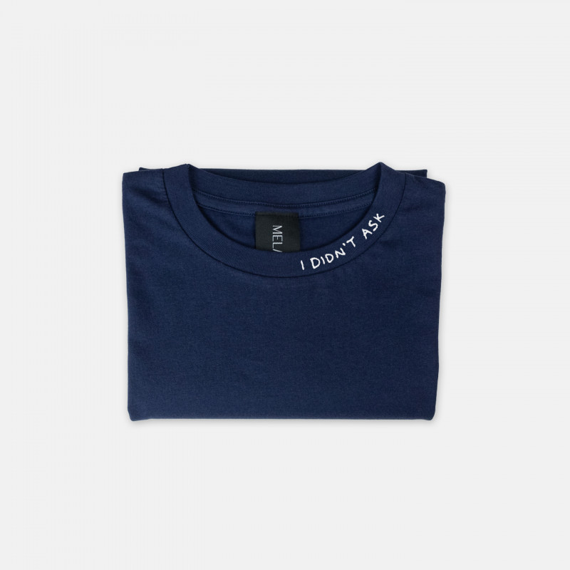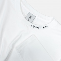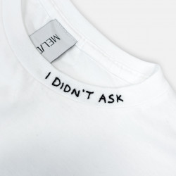 T-shirt in cotone biologico certificato disponibile in più modelli e colori. Ricamo I didn't Ask realizzato a mano nella factory melidé. Made in Italy.