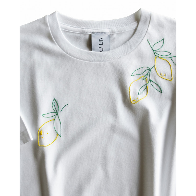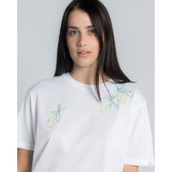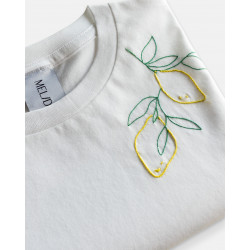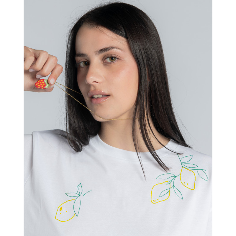 T-shirt in cotone ecosostenibile ricamata a mano.