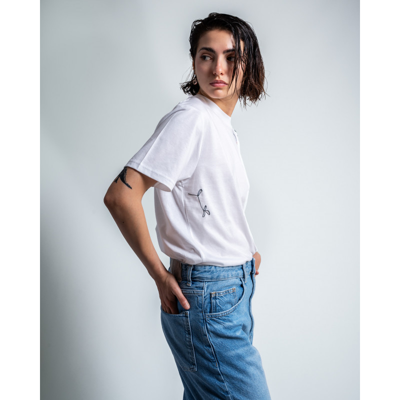 T-shirt in cotone biologico con ricamo eseguito a mano.