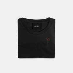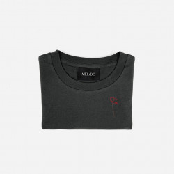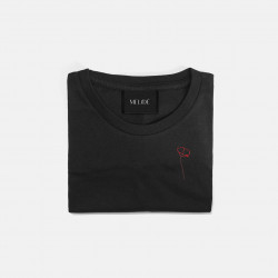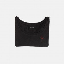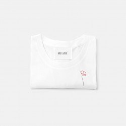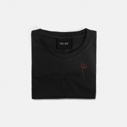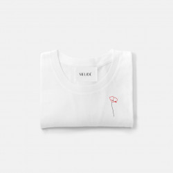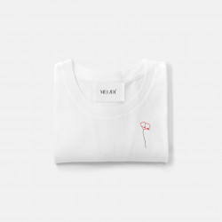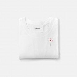 Ricamo realizzato a mano su t-shirt in morbido cotone biologico di alta qualità, certificato GOTS: