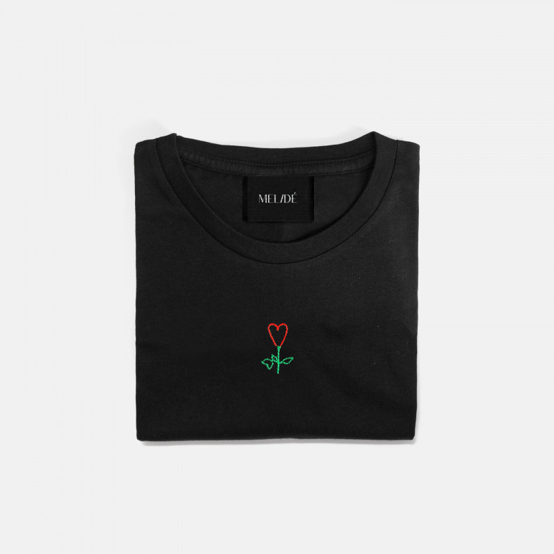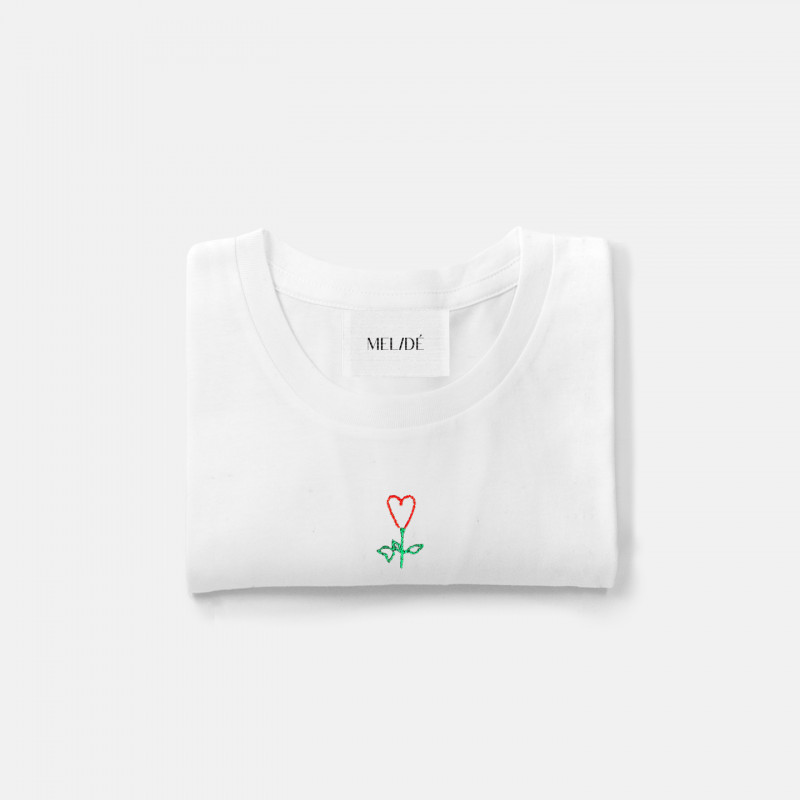 T-shirt in cotone biologico ricamata a mano.