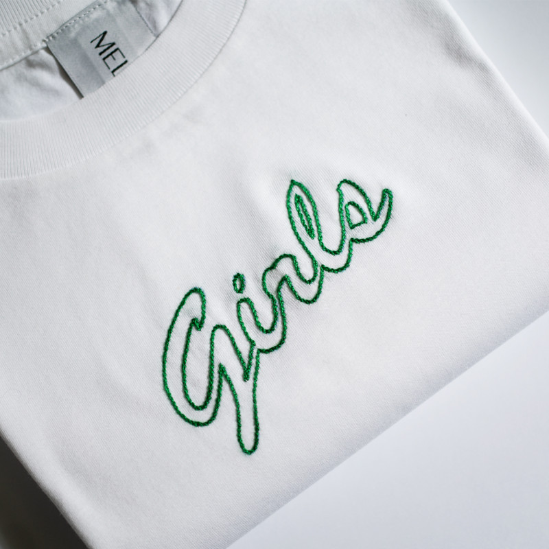 T-shirt in cotone certificato GOTS ricamata a mano nella factory MELIDÉ.