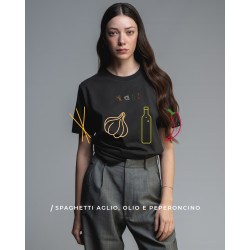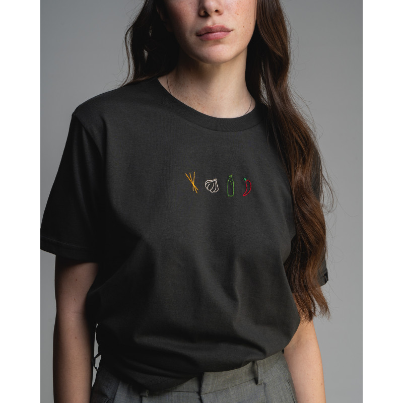 Collezione PASTA realizzata su t-shirt ricamata a mano nella factory melidé in cotone GOTS.