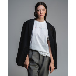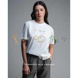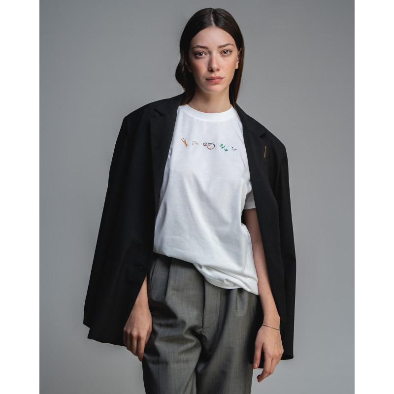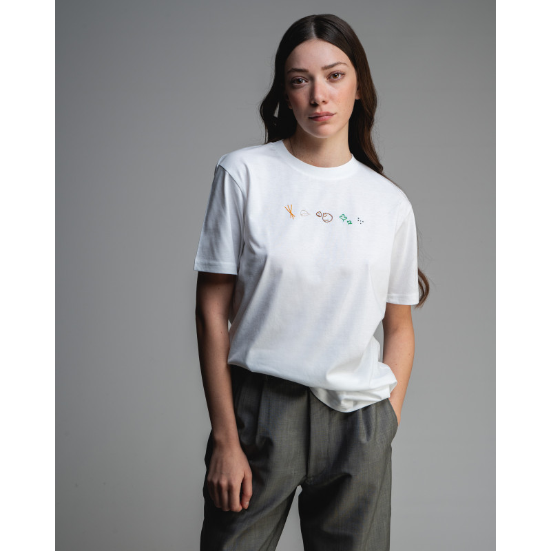 Collezione PASTA realizzata su t-shirt ricamata a mano nella factory melidé in cotone GOTS.