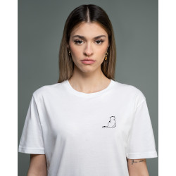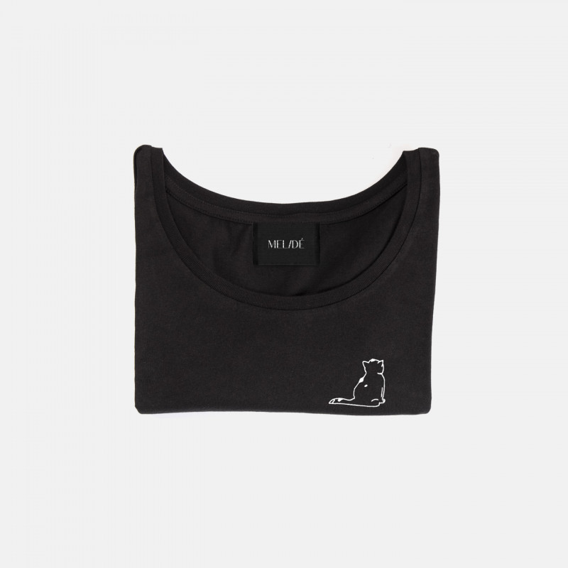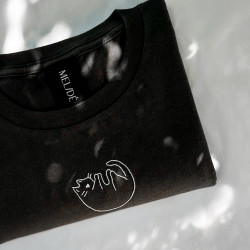 T-shirt in cotone biologico certificato modello Tina The Cat, ricamata a mano nella nostra factory. Il ricamo, a differenza delle comuni stampe che si trovano sulle t-shirt in commercio, non perde la qualità con il passare del tempo.