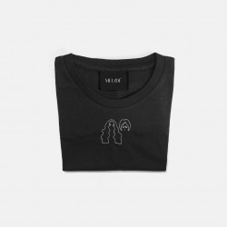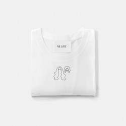 Ricamo realizzato a mano su t-shirt in morbido cotone biologico di alta qualità, certificato.