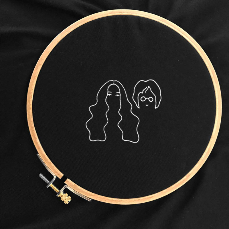 Ricamo ispirato all'iconica coppia Yoko Ono e John Lennon.