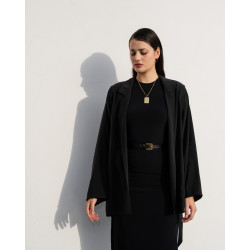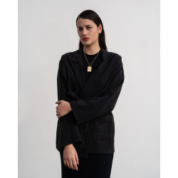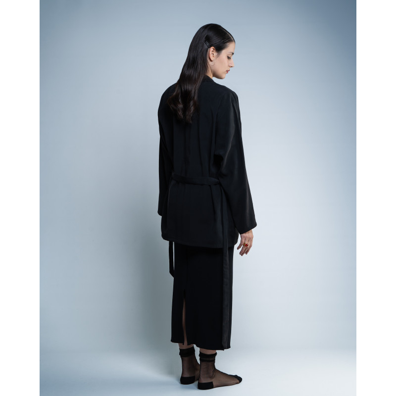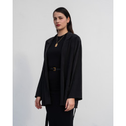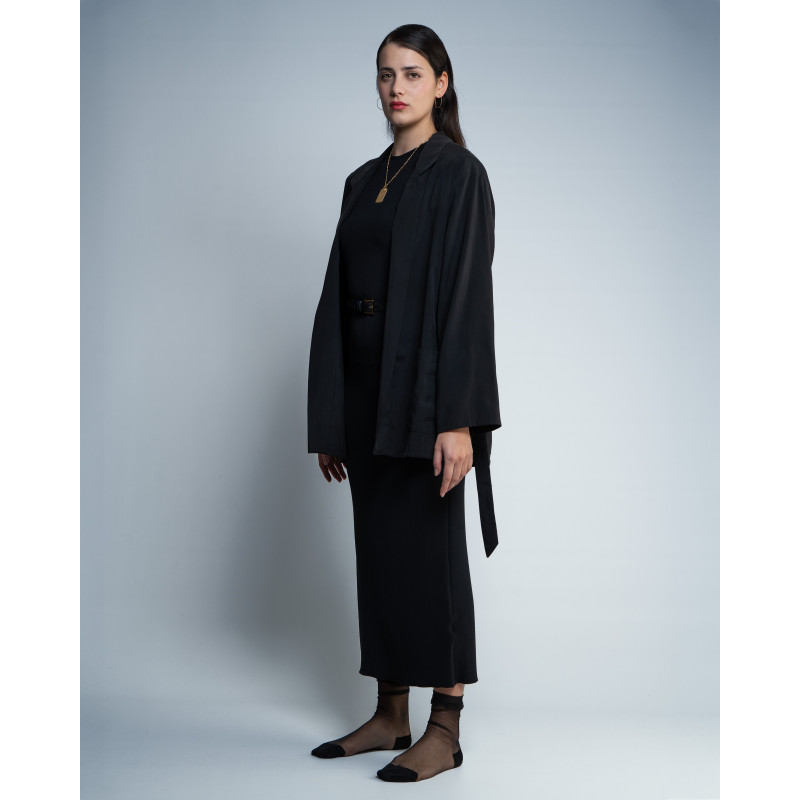 Tubino in poliestere nero riciclato con spalline foderate in viscosa.