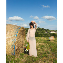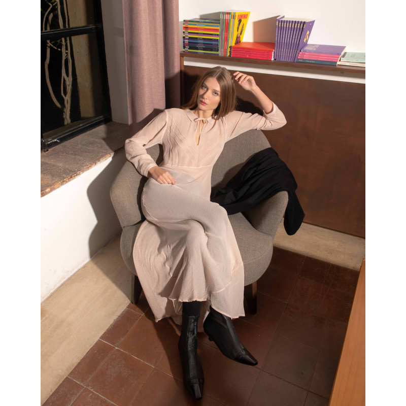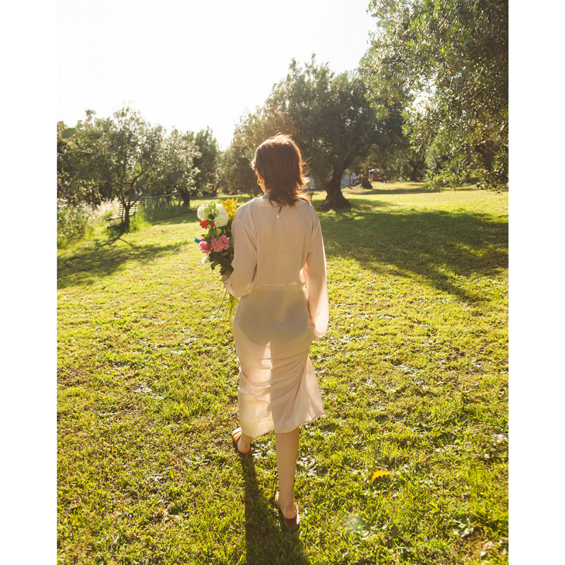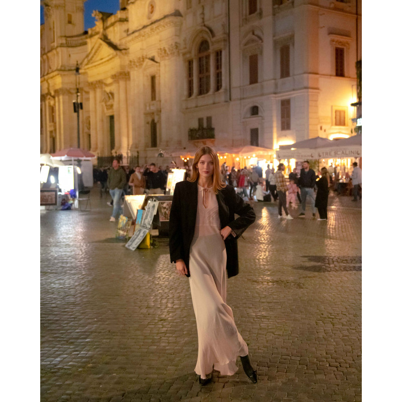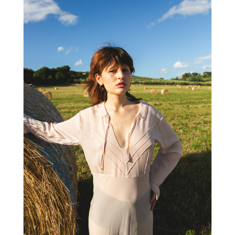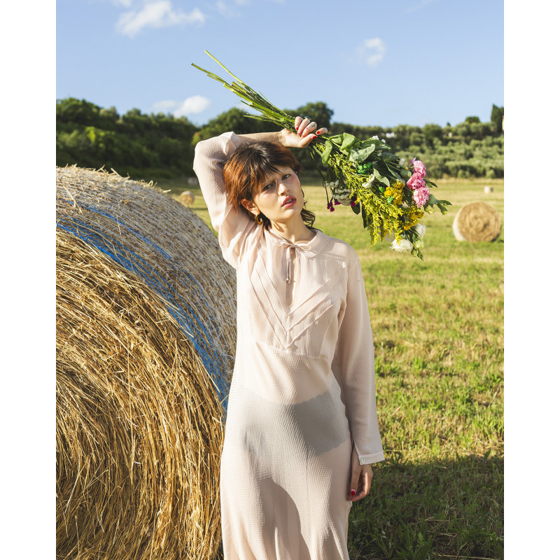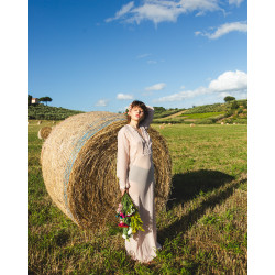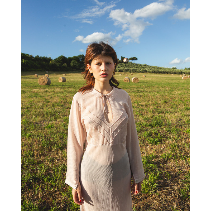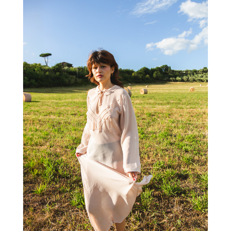 Vestito lungo color rosa antico, in viscosa e acetato proveniente da economia circolare.